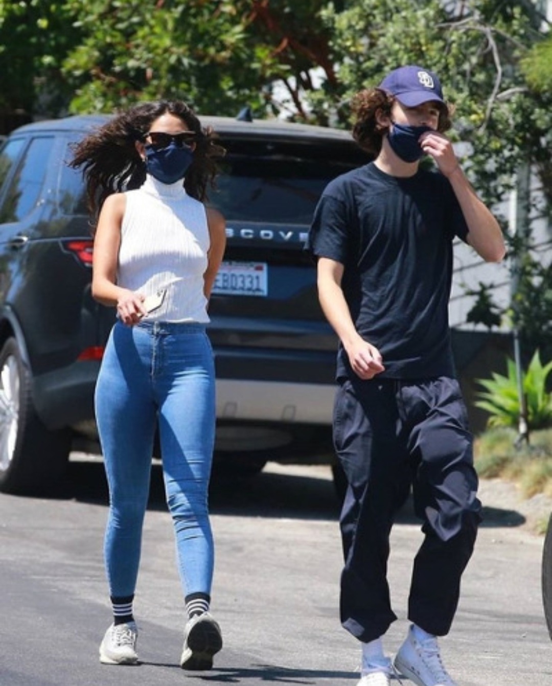 티모시 샬라메는 야구 모자와 검은색 마스크를 쓰고 카일리 제너의 SUV 뒷좌석에서 함께 타코를 먹으며 눈에 띄지 않으려고 하는 모습이었습니다.
